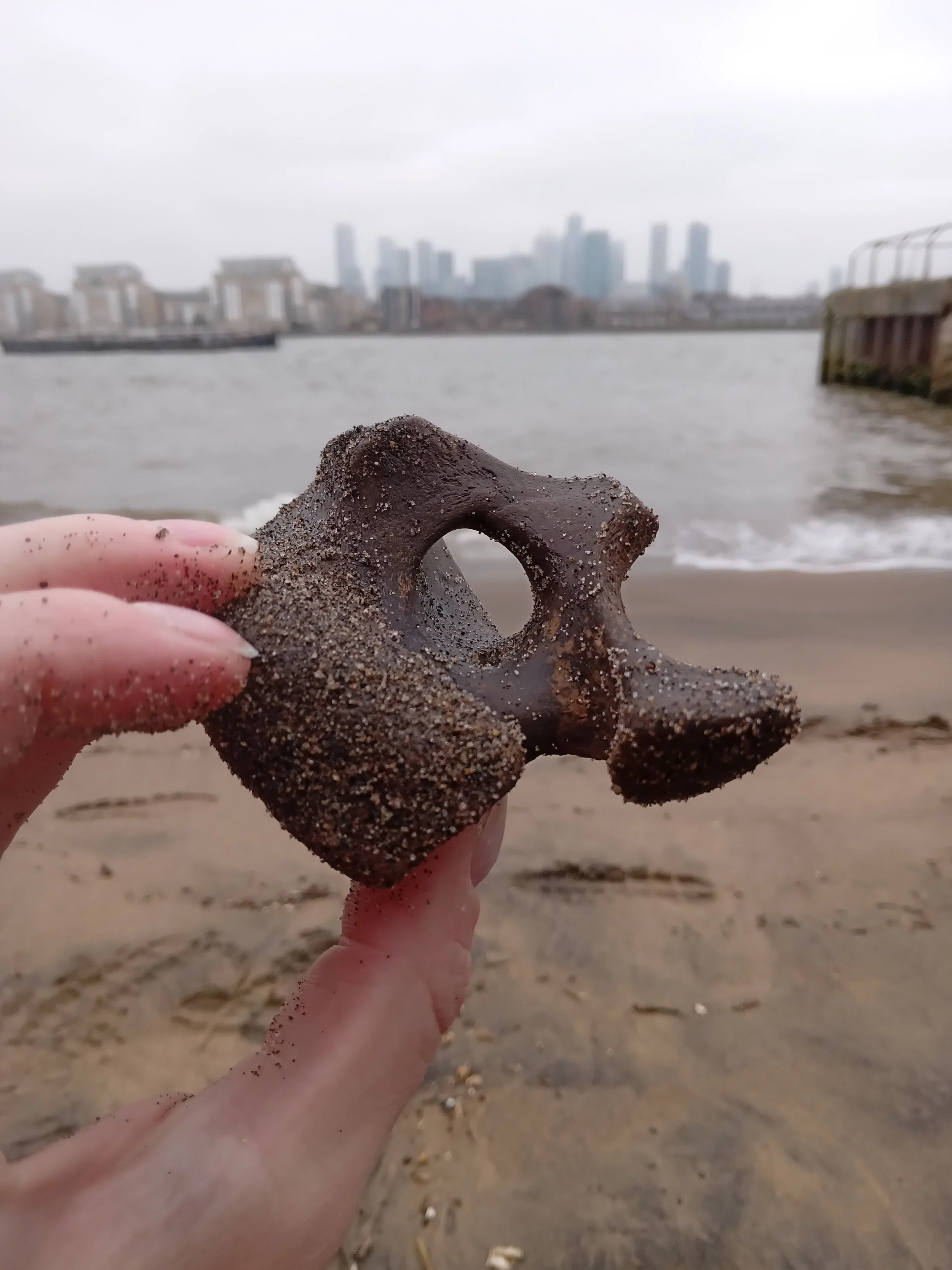 This performance was part of a wider artistic research project also called Marking Tidetime. The artistic research focussed on documenting weekly mudlarking walks and encounters along the foreshore with a range of intertidal inhabitants and objects, in a series of voice note recordings. Through spoken-word responses to object-based encounters, the work considered ways of being-with the shifting tide times and ecologies of the Thames river. Acts of walking and moving-with the tides, gave voice to moments of unearthing embodied relations with various artefacts and sedimented deep time.